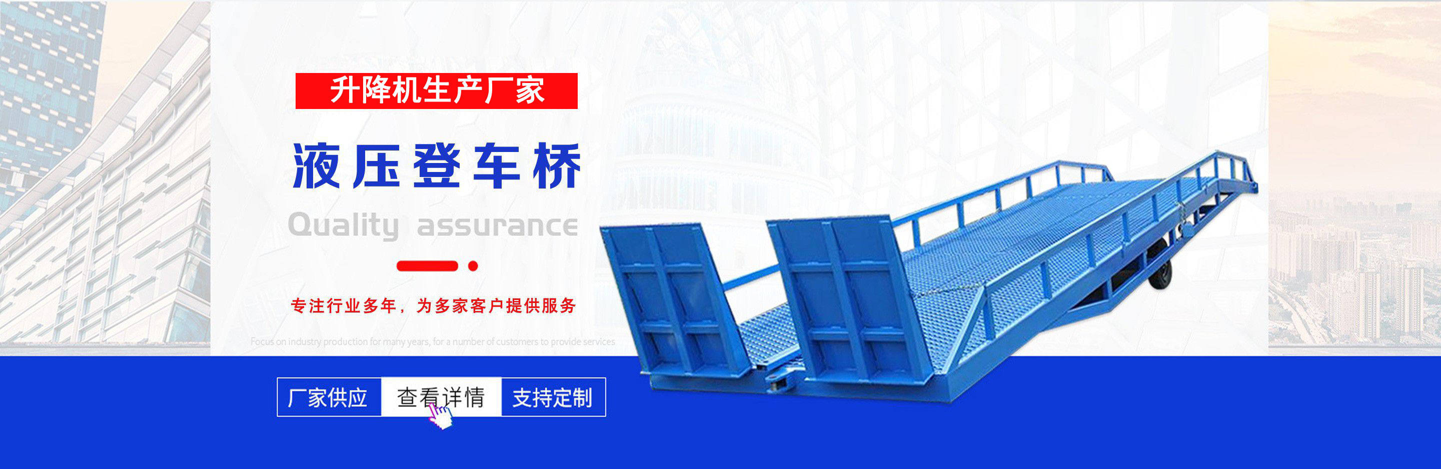 升降機生產廠家是專業從事升降平臺,液壓貨梯,卸豬臺,平板拖車,液壓提升機,移動式升降機,升降平臺車,高空作業設備,貨梯廠家,液壓登車橋等升降機械產品制造十余年,服務過各大國內外企業。 自公司創立以來,經過長期對液壓升降臺的研制和探索,積累了豐富的專業制造技術和寶貴經驗。憑借豐富的專業技術及不斷開拓創新的精神,現已成為專業于升降機械的公司?! ¢L期以來,憑借公司不斷的壯大及對液壓技術的不斷改進和探索。能根據客戶不同的要求設計一套合理、完善的方案供客戶參考?,F有產品:升降平臺,液壓貨梯,卸豬臺,平板拖車,液壓提升機,移動式升降機,升降平臺車,高空作業設備,貨梯廠家,液壓登車橋等。本產品在各類工礦企業、港口物流以及其它領域均發揮著重要的作用。始終以“以信譽求生存、以技術求發展”為本廠的經營理念。只要你選購我廠的產品,無論你身在何方都能得到我們迅捷優良的服務?! 」咀猿闪⒁呀泚肀局?quot;團結、求實、創新、互贏"的理念,以先進的技術和服務,為客戶建造滿意的產品。幾年來受到廣大客戶的好評。...